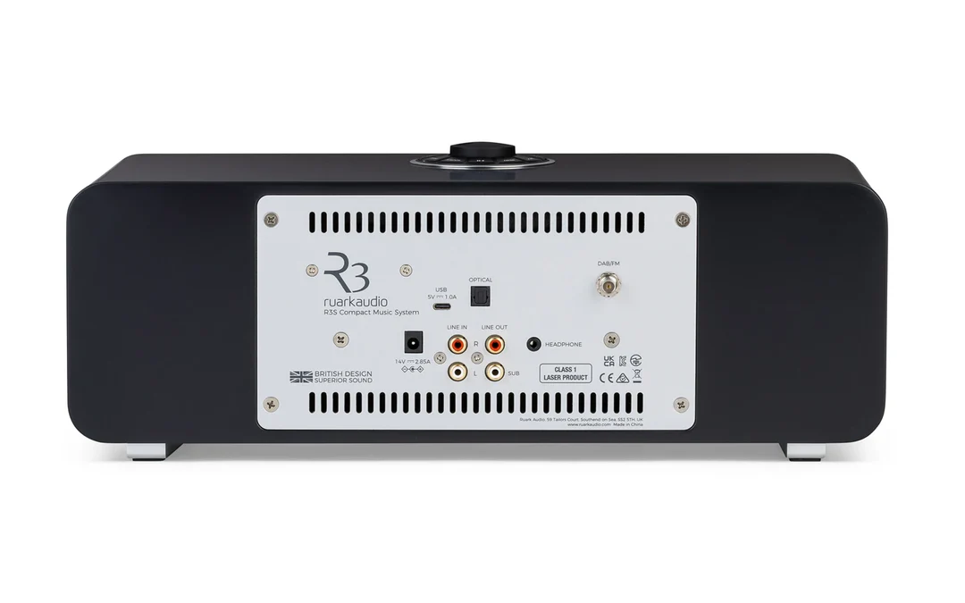 Auf der Rückseite befinden sich ein USB-C-Wiedergabe- und Ladeanschluss, ein Kopfhörerausgang sowie umschaltbare analoge und digitale Eingänge, sodass Geräte wie Plattenspieler oder Fernseher problemlos angeschlossen werden können. Für zusätzliche Basswiedergabe lassen sich die Line-Ausgänge umschalten und an einen aktiven Subwoofer anschließen. Unser eigener RS1-Subwoofer passt perfekt zum R3S und verleiht seinem ohnehin schon beeindruckenden Klang zusätzliche Dynamik und Realismus.
